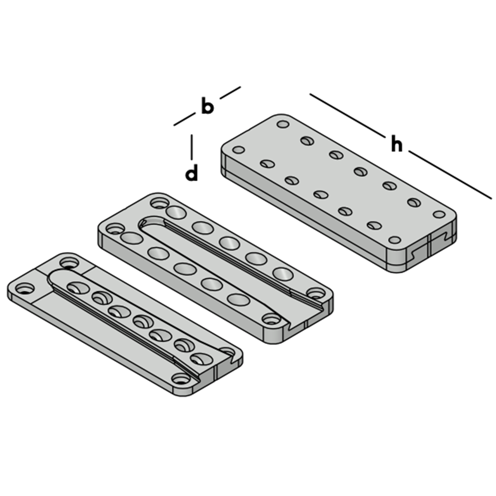 Tweedelige set gefreesde aluminium blokken welke in elkaar geschoven worden voor het maken van haakse houtverbindingen. Dit betreft een zgn. blinde verbinding omdat de bevestigingscomponenten na montage niet meer zichtbaar zijn. Het systeem ontleent zijn kracht aan de combinatie van de aluminium blokken in combinatie met bijhorende schroeven. Deze schroeven zijn apart verkrijgbaar.