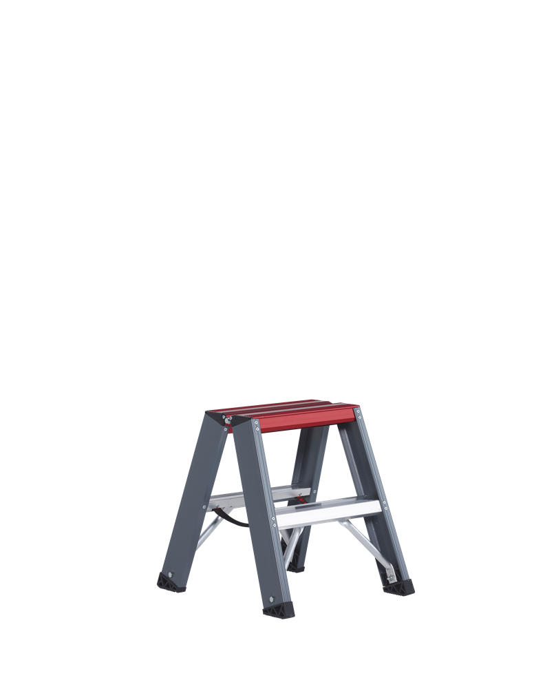 De Falco is gemaakt voor intensief gebruik. Dubbel oploopbaar dus aan beide zijden te gebruiken. De robuust vormgegeven trap is ideaal voor elke professionele klus. Het unieke scharniersysteem van het bordes maakt de trap opvallend veilig in gebruik.