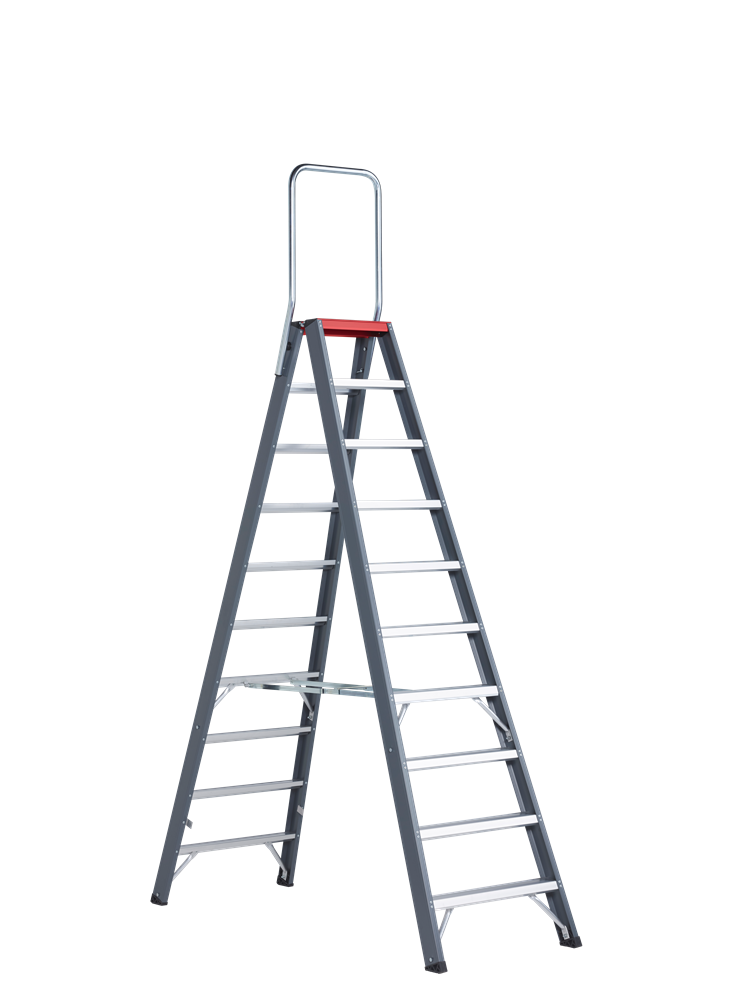 De Falco is gemaakt voor intensief gebruik. Dubbel oploopbaar dus aan beide zijden te gebruiken. De robuust vormgegeven trap is ideaal voor elke professionele klus. Het unieke scharniersysteem van het bordes maakt de trap opvallend veilig in gebruik.