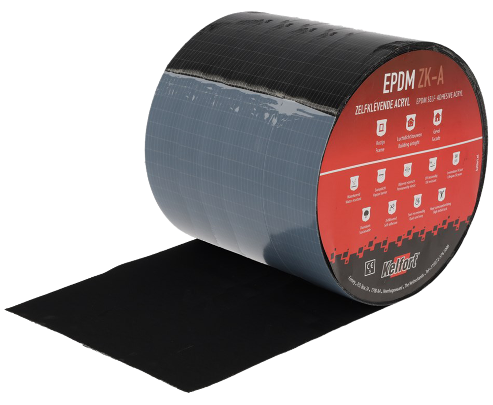 Kelfort zelfklevende acryl EPDM (ZK-A)strook bied je de oplossing om een waterkerende en luchtdichte afdichting te realiseren zonder het gebruik van kit.