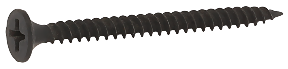Type S. Zwart gefosfateerd, met normale draad, met scherpe punt en trompetkop met phillips kruis.