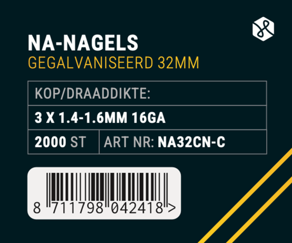 AFWERKNAGELS NA32 CNK 1.6X32MM SCHUIN 16 GAUGE
