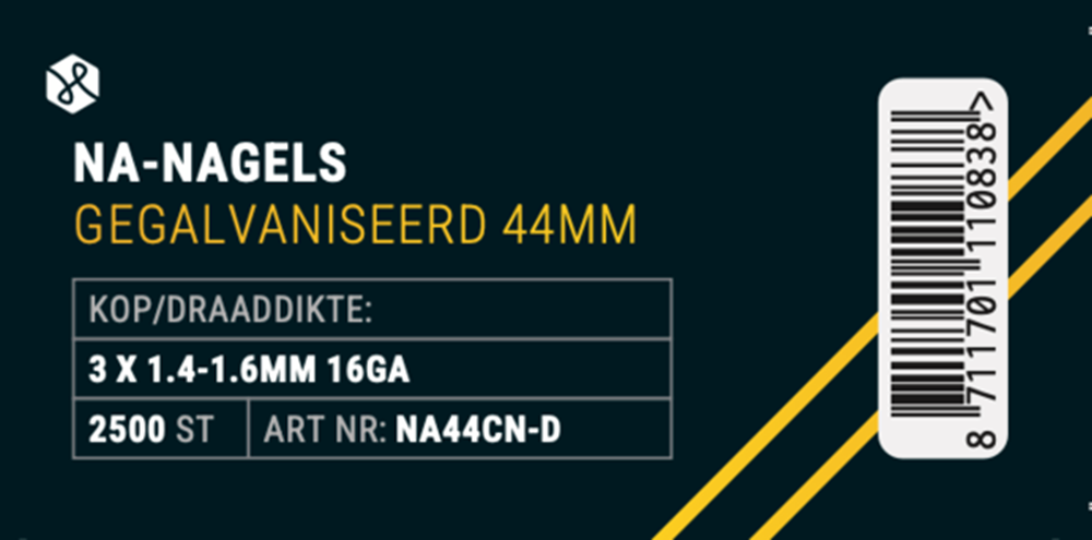 AFWERKNAGELS NA44 CNK 1.6X44MM SCHUIN 16 GAUGE
