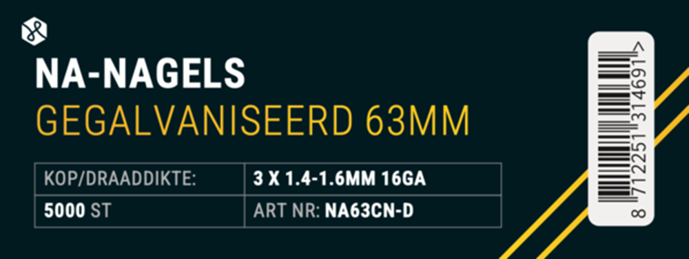 AFWERKNAGELS NA63 CNK 1.6X63MM SCHUIN 16 GAUGE