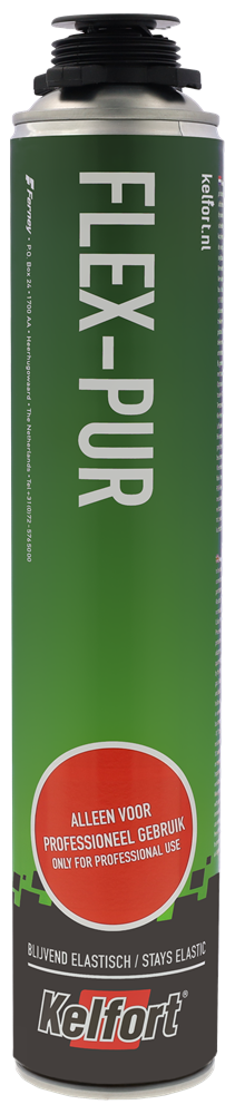 Type Flex-Pur. Eén-component vochtverhardend polyurethaanschuim, blijvend elastisch. Steeds gebruiksklaar en geschikt voor pistool of adapter met conisch slangetje. Te gebruiken voor het isoleren, afdichten, luchtdicht maken en vullen van dakaansluitingen, dynamische voegen, naden en aansluitingen t.b.v. scheidingswanden, plafonds, pvc- en aluminium kozijnen. Te gebruiken bij een buitentemperatuur tot -10°C. Absorbeert 3 keer meer beweging in de voeg dan bij normaal purschuim en is zeer licht snijdbaar. Kleur wit.