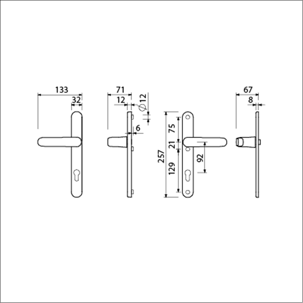 Buitenschild 12 mm met deurkruk 378 ROTA verend vastdraaibaar,