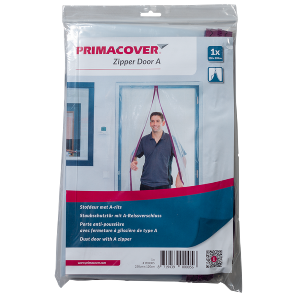 Stofdeur met voorgemonteerde A-rits. Snelle en eenvoudige montage op iedere doorgang. Kan met dubbelzijdige tape (niet meegeleverd) probleemloos op uiteenlopende ondergronden worden aangebracht.