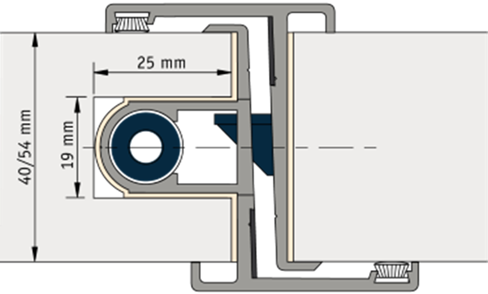 Brandwerende voorraad deurnaald voor aanslag en wisseldeuren met tussenruimte 11mm, compleet met slotuitsparing voor deurdikte 40/54mm.